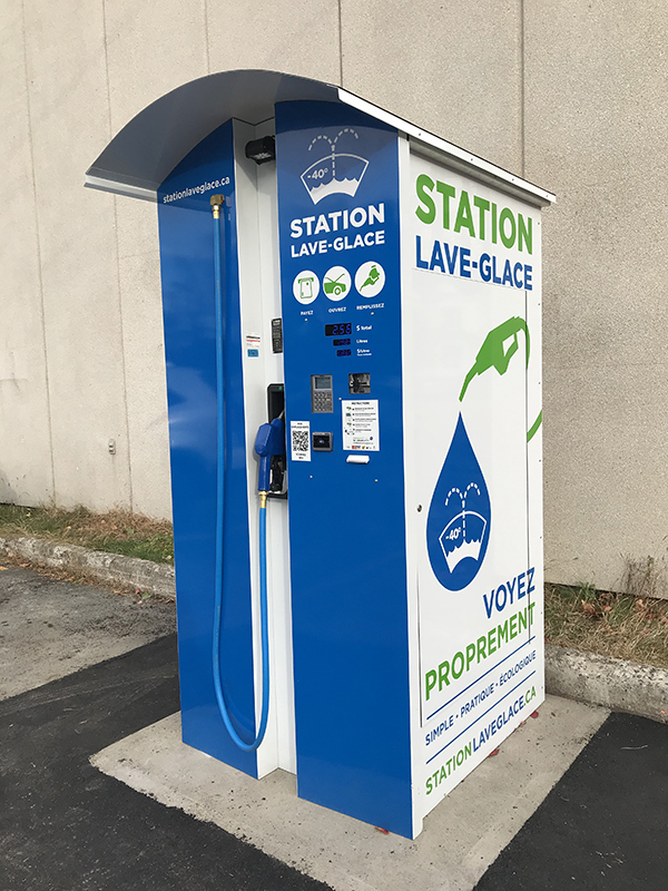 Une station de remplissage de lave-glace est accessible en libre-service dans le stationnement de l’hôtel de ville. Comme à la pompe à essence, il suffit de prendre le tuyau et de remplir directement le réservoir de sa voiture. Le produit est facturé à la quantité utilisée au tarif de 1,14 $ par litre et le paiement s’effectue par carte de crédit directement sur la station.